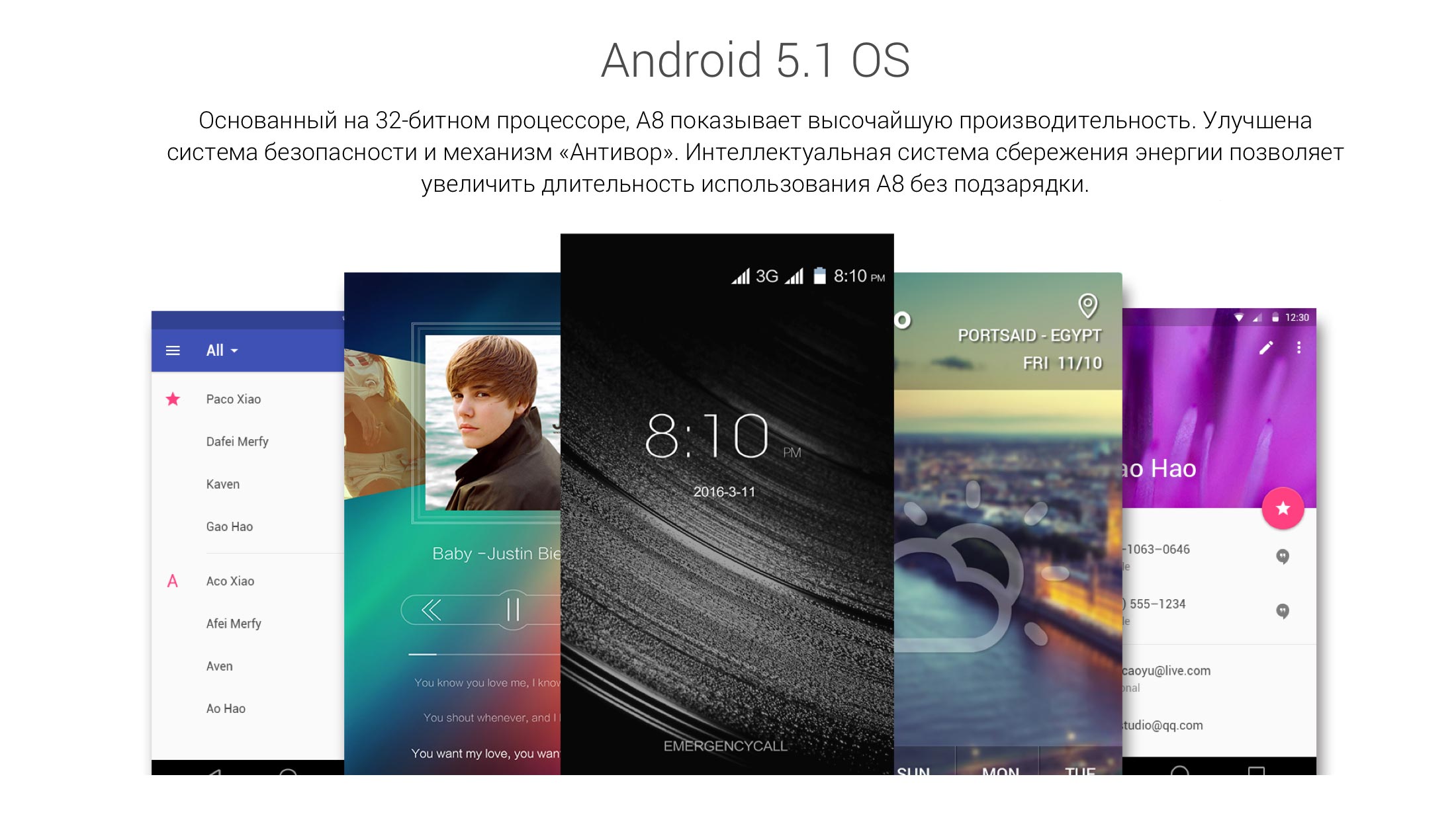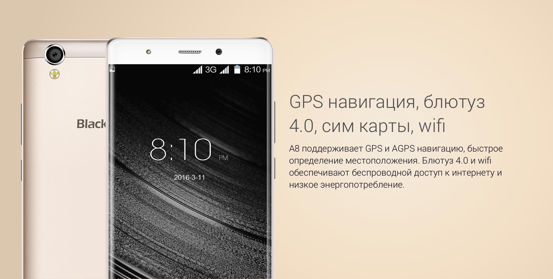 В качестве аппаратной платформы смартфона blackview a8 выступает mtk6580, производительности которой более чем хватит для среднестатистического пользователя. Объем оперативной памяти составляет 1 Гигабайт, а внутреннее хранилище данных рассчитано на 8 Гигабайт информации (с помощью карт памяти можно увеличить до 32 ГБ). Учитывая энергопотребление процессора mtk6580 и установленный на blackview a8 аккумулятор емкостью 2050 мАч, владелец может рассчитывать на то, что подзаряжать девайс потребуется раз в 2 дня.
