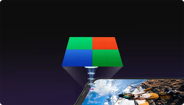 В зависимости от освещённости сцены, сенсор может работать в режиме 4 пикселя в 1, что позволяет получить больше света для каждого отдельно пикселя.