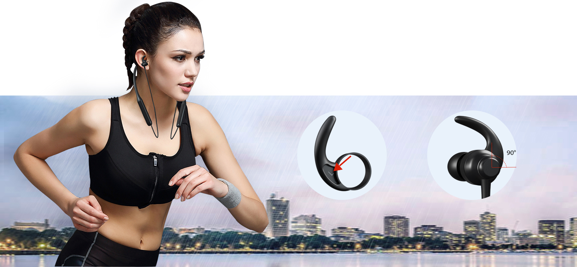 Специальная форма наушников в виде крючков обеспечивает надёжное крепление во время интенсивных тренировок.