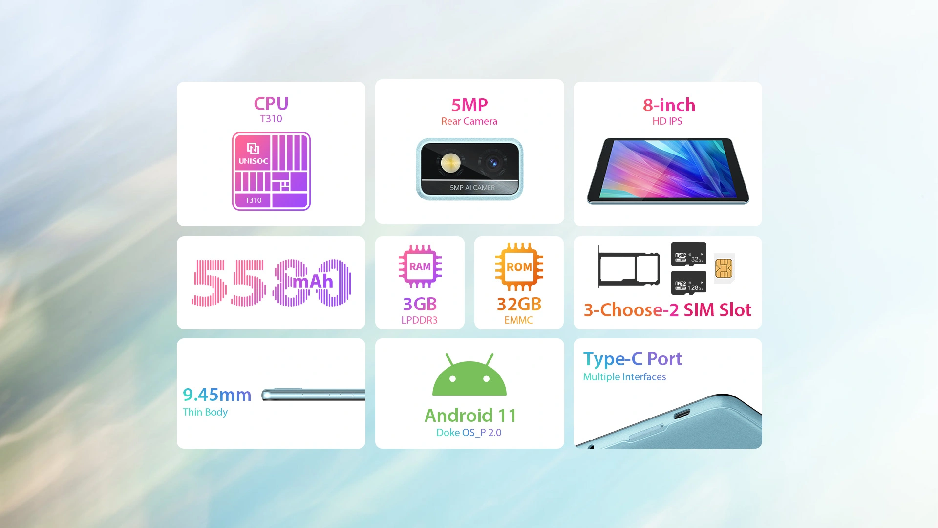 8" экран с HD разрешением отлично подходит для рабочих задач, чтения и развлечений.